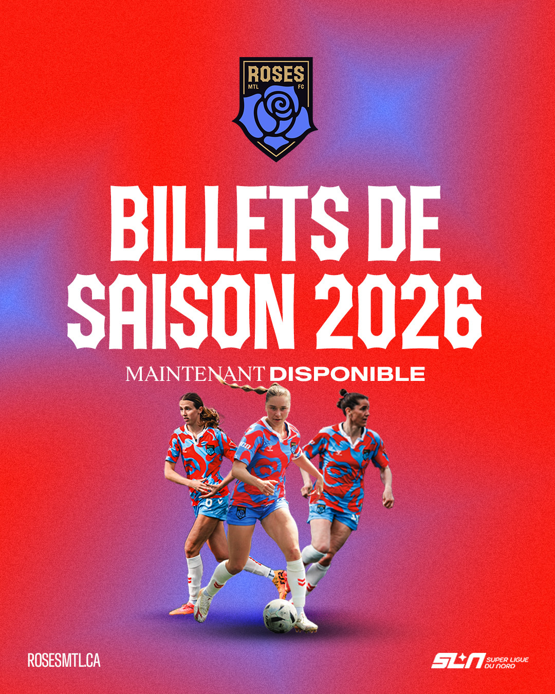Alors que la première saison de la Super Ligue du Nord touche à sa fin, les abonnements de saison 2026 des Roses de Montréal sont dès maintenant disponibles. Les partisans peuvent dès aujourd’hui réserver leur place au Stade Boréale pour vivre une deuxième saison qui s’annonce encore plus spectaculaire. Les abonnements incluent l’accès prioritaire aux matchs à domicile, des avantages exclusifs sur la marchandise officielle, et des rencontres privilégiées avec les joueuses tout au long de l’année. Tous les détails et formulaires de dépôt sont disponibles au rosesfc.ca/abonnements.